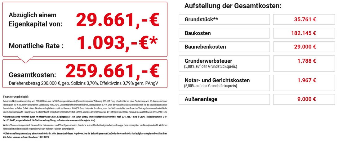 Wir denken Heute schon an Morgen und bauen Ihr persönliches Massivhaus inklusive Vollausstattung. So haben Sie nicht nur die Sicherheit sich vor steigenden Nebenkosten zu schützen, Sie wohnen außerdem in einem flexiblen, werthaltigen und wohngesundem Eigenheim. Damit erhalten Sie ein ressourcenschonend gebautes, bezahlbares Haus und bewohnen eine echte Altersvorsorge.
