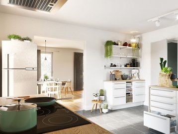 In der Küche haben Sie viel Platz für gemeinsame Kochabende und das Familienfrühstück unter der Woche.